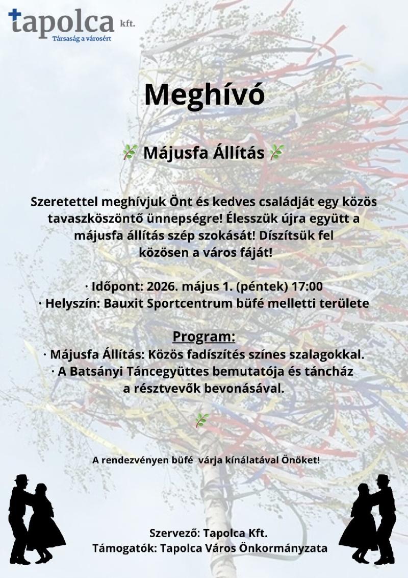A tapolcai májusfaállítás 2026-ban is a tavasz egyik legszebb hagyományát eleveníti fel. A feldíszített fa a közösség összetartozását jelképezi, miközben zenével, jókedvvel és ünnepi hangulattal várják a látogatókat a Balaton-felvidék szívében.