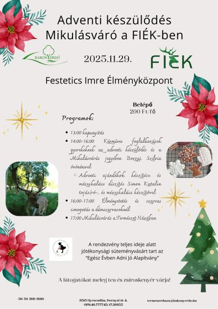 November 29.-én 13 órától mindenkit sok szeretettel vár a Festetics Imre Élményközpont az advent és mikulásvárás jegyében egy családi,kézműves délutánra, szarvas etetésre.