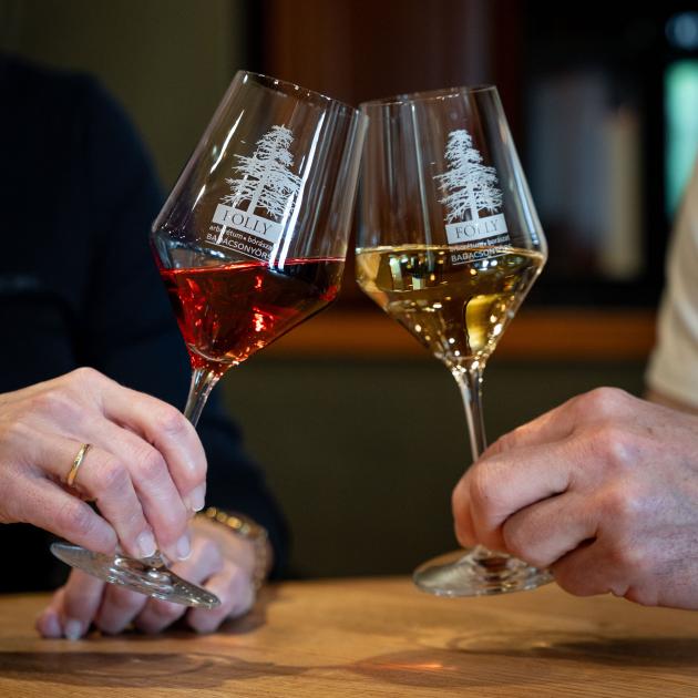 Ajándék: logózott Folly borospohár