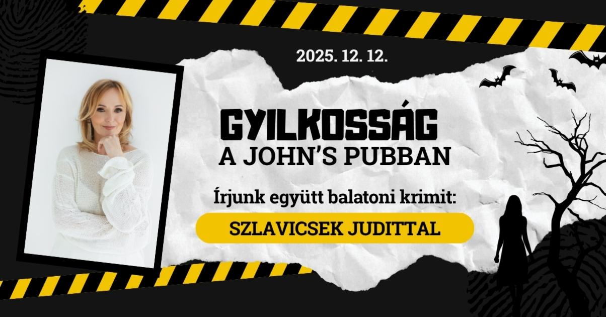 A résztvevőkkel közösen megírunk egy izgalmas, balatoni bűnügyi történetet, amelynek helyszíne nem más, mint Keszthely és a John’s Pub – ahol most személyesen is ott leszel.
