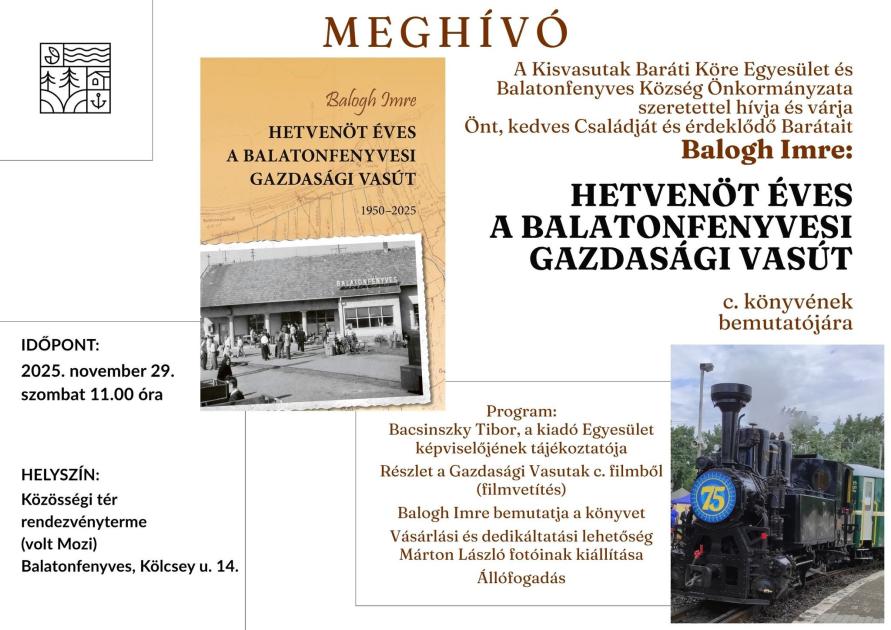 Ezen a napon a 75 évét átfogó helyi gazdasági vasút könyvbemutatója is lesz délelőtt 11:00 órakor a Közösségi Térben.