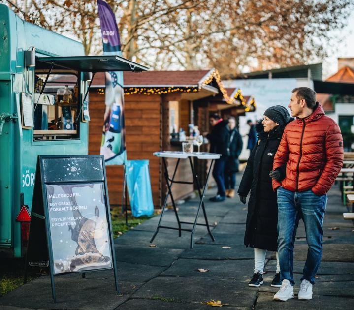 Az ínyenceket a Faya Bakery, a Balázs Bisztró, a PartOn Bistro és az Erőss Kürtőskalács kínálata várja, italokkal a Bujdosó Borászat, a Budaprés Cider és a Helka Sörfőzde készül.