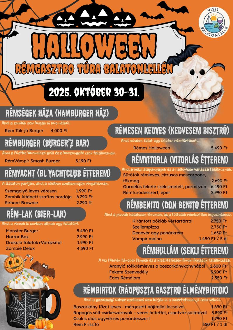 Rémületesen finom kaland vár rátok Balatonlellén! A különleges tematikus túra során a város vendéglátóhelyei egyedi, „rémes” névvel és fantáziadús halloweeni fogásokkal készülnek, bele kell kóstolnotok!