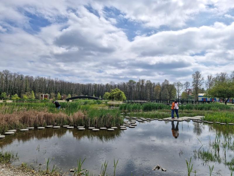 A környező erdőkből hallatszó madárhangok, a tóban egy árnyéktól is megijedő ezernyi ebihal látványa egy környezetismeret órának is megfelel, minden gyerek jól érzi magát, míg felfedezi a természet csodáit. Kis tipegőkre lépdelve még a vízen is járhatunk!