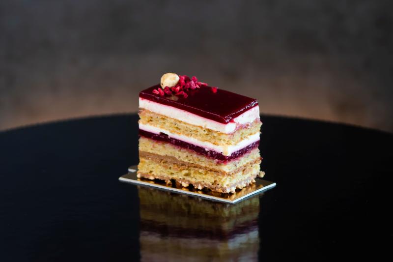 A Balaton kincsei a tó gyümölcsös gazdagságát rejti magában: kakaós piskóta, áfonya–málna zselé és selymes mogyorómousse találkozik benne.