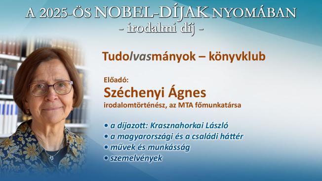 Széchenyi Ágnes irodalomtörténész előadása a 2025-ös Nobel-díjról és díjazottról.