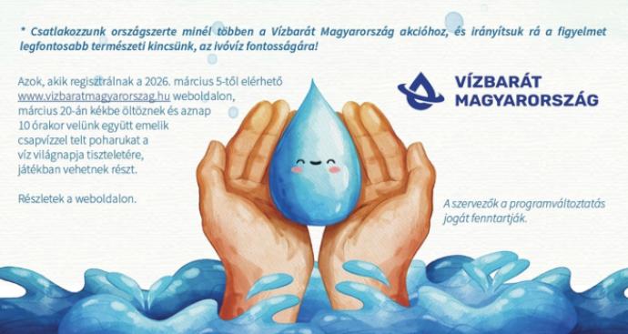 A víz világnapja alkalmából szervezett programjaink részeként nagyszabású rendezvényt tartunk Siófok Fő terén 2026. március 20-án 9.30–14.00 között, melyre minden érdeklődőt szeretettel várunk.