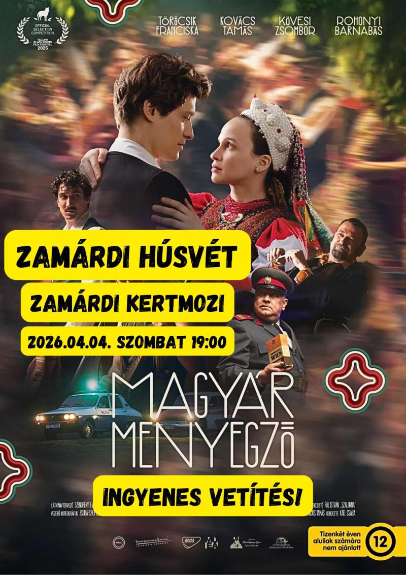 A húsvéti hétvégén a kertmozi már tavasszal is életre kel Zamárdiban. Április 4-én, szombaton 19 órától a Magyar menyegző című film vetítésével várják a mozirajongókat. A szabadtéri filmnézés különleges hangulatot ad az estének: a Balaton közelsége, a tavaszi levegő és a közös mozizás élménye igazán emlékezetes program lehet a húsvéti hétvégén.